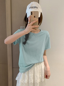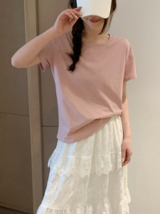 YING+十三行 简约纯色T恤薄款雪花棉百搭短袖上衣女夏M18-205净版