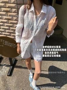 老钱风小马衬衫套装女夏薄款气质休闲防晒格子衬衣阔腿短裤两件套