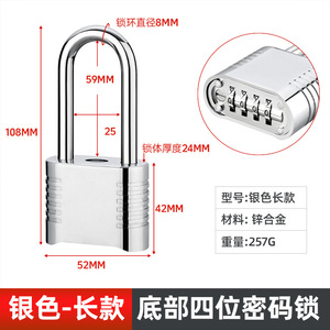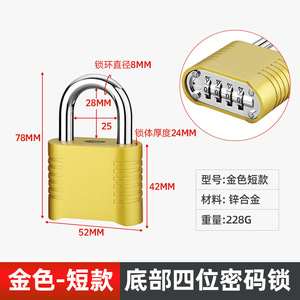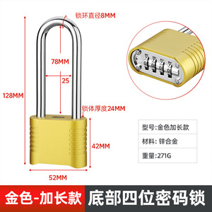 密码锁挂锁 加长梁柜子锁室外仿铜锁门锁大锁子底开4位密码大挂锁