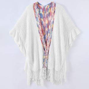 新款旅游打卡新疆西藏青海防晒镂空彩条荷叶边披风斗篷民族风披肩