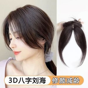 女性用3D前髪ウィッグ、中間分け前髪、ナチュラル韓国風ネットセレブ額ウィッグ、頭頂部前髪