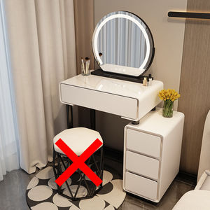 1024(新小户)-质感岩板桌面 、卡其色60.5黑腿+柜+镜+鸟巢凳