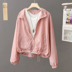 女性用アウトドア夏の日焼け止め服、軽量、通気性、ルーズスタンドカラー長袖ジャケット2025薄手ジャケットカジュアル新スタイル