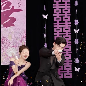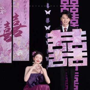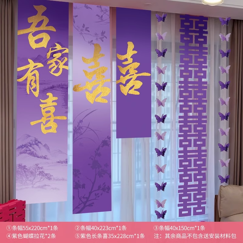 結婚式の部屋の装飾セット結婚式の紫色の吊り布ニッチバナー朝のローブ撮影背景壁ロングストリップ結婚式の花約