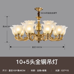 美式奢华全铜吊灯欧式大气客厅灯卧室餐厅灯简约书房玉石高档灯具
