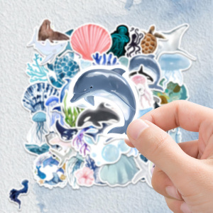100枚の海洋生物絵柄ステッカー、携帯電話ケース、ノート、スーツケース用PVC防水ステッカー、越境ホットセール卸売