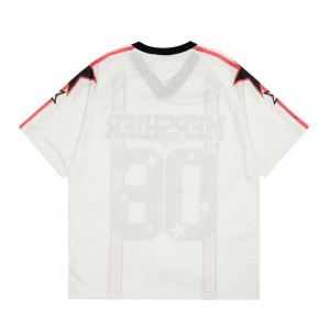 アメリカンレトロなコントラストカラーのVネック半袖ジャージTシャツ、男性と女性用、夏のトレンディなブランドメッシュホール生地ルーズスポーツトップ