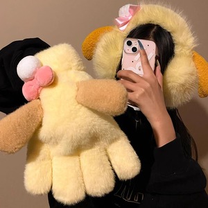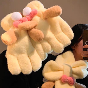 可爱韩版饼饼毛绒手套女生冬季户外保暖加绒加厚护颈围脖手套批发