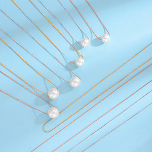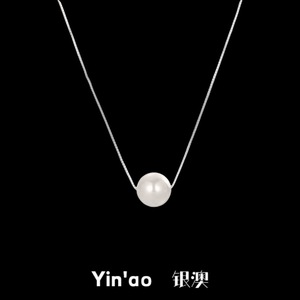 s925纯银项链百搭简约单颗珍珠吊坠韩版盒子链高级感气质2025新款