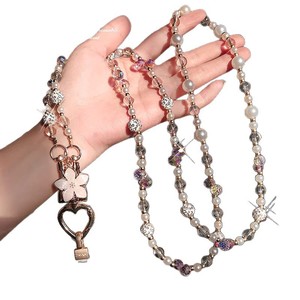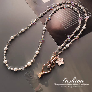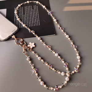 斜挎珍珠水晶手机挂链长款ins女小清新夏出游防丢手机壳背包包链