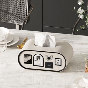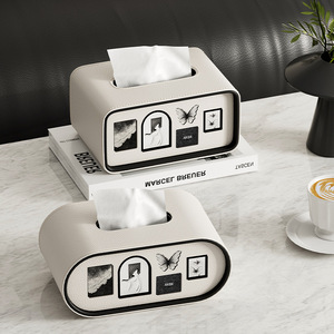 2025 新楕円形ティッシュボックスリビングルームライト高級ホーム多機能クリエイティブティッシュボックス寝室デスクトップコーヒーテーブル