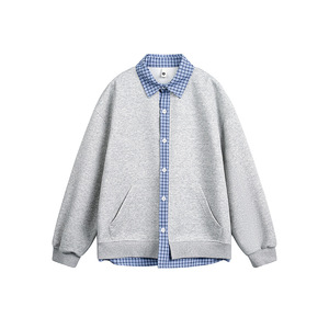 2025 秋の新メンズ偽ツーピース長袖スウェットシャツトレンディなブランドファッション個性コントラストカラーシャツ襟スウェットシャツジャケット