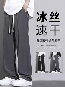 NASA冰丝休闲裤男士夏季薄款阔腿西裤休闲直筒速干运动长裤潮