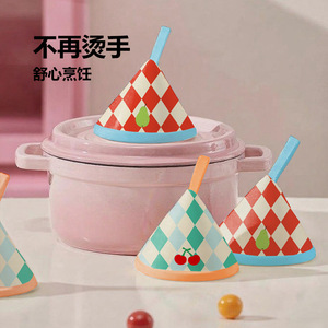 批发可爱三角防烫锅盖帽铸铁砂锅锅耳套厨房隔热手套不烫手锅盖帽