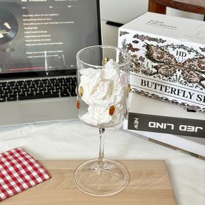 原创设计师款高脚杯ins高颜值酒杯浮雕宝石水杯香槟酒杯鸡尾酒杯