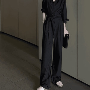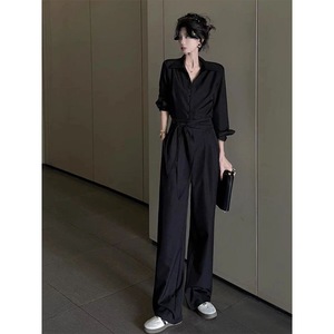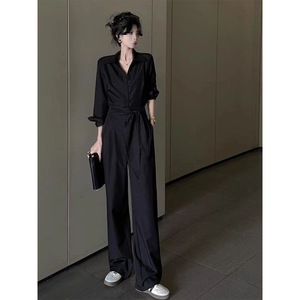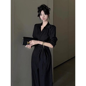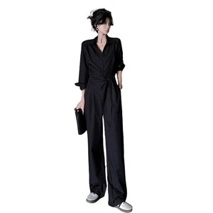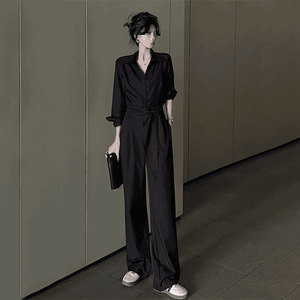 山本风黑色翻领衬衫阔腿裤套装女春季新款御姐气质轻熟两件套