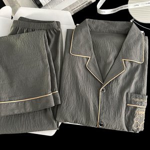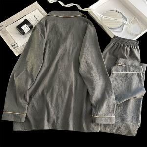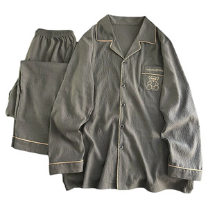 Yunduo 綿パジャマメンズ 2025 新しい夏の長袖ズボン春と秋の薄いホーム服セットは屋外で着用できます