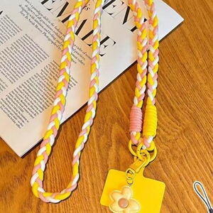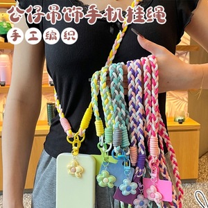 网红糖果五瓣花手机挂绳多巴胺斜挎长款ins风撞色手工编织结实耐