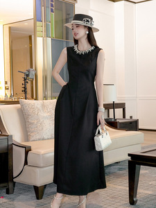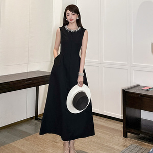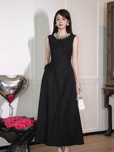 フレンチハンドメイドパールカラーヘップバーンスタイルドレスレディースウエストノースリーブリトルブラックドレスデザインベストドレス9791