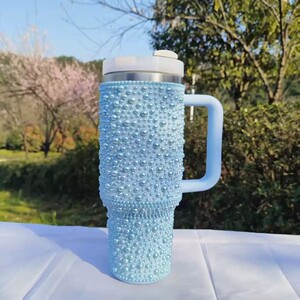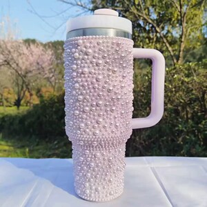 クロスボーダー新しいパールダイヤモンド 40 オンス車のカップハンドル付きポータブル車のカップステンレス鋼魔法瓶カップ水カップ