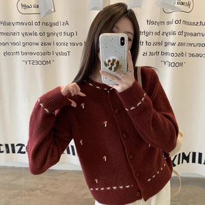 温柔韩系圆领针织开衫少女感2025秋冬新款宽松甜美减龄毛衣外套女