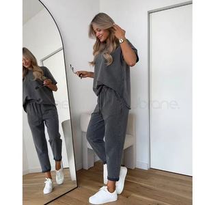 2025 独立したステーション外国貿易新しいソリッドカラーカジュアルパンツ女性のためのヨーロッパとアメリカのシンプルなスタイルスリムレースアップ小脚パンツ女性のための