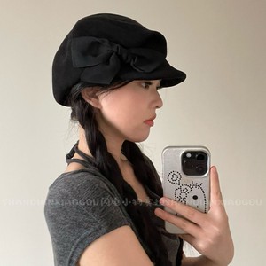 英伦风复古蝴蝶结短檐画家帽春秋季大头围显脸小气质优雅贝雷帽