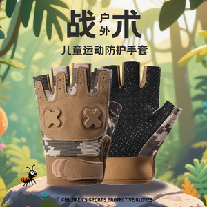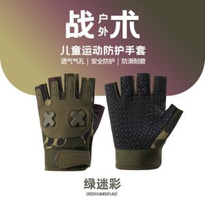 子供と学生のハーフフィンガー戦術手袋屋外サイクリング保護ハーフフィンガー登山耐摩耗性クライミング通気性滑り止め手袋