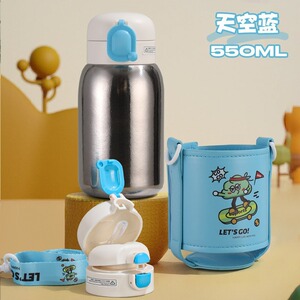 网红卡通风纯钛杯儿童水杯双饮保温杯便携背带通用弹跳便携式