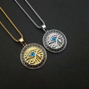 跨境热销复古埃及荷鲁斯之眼饰品镀金蓝眼睛圆牌吊坠项链厂家直销