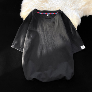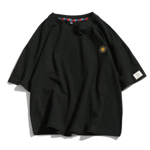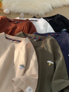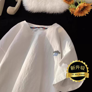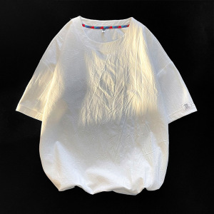 NASA刺绣棉麻短袖T恤男士夏季宽松大码廓形衣服潮牌男款亚麻半袖