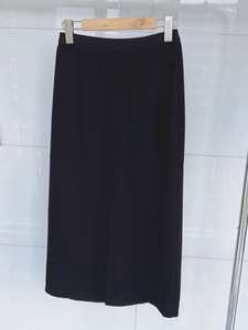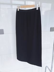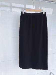 Th/Row极简风三醋酸半身裙女黑色显瘦百搭半裙松紧腰后开叉中长裙