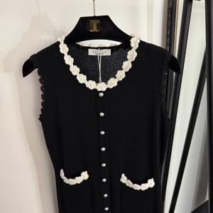 2025南油超级跑量款珍珠纽扣立体钩花圆领针织无袖背心连衣裙长裙