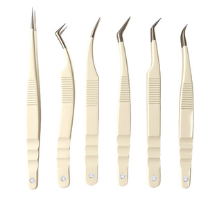 ウクライナピンセット、まつげアーティスト専用クリームホワイト高精度ピンセット、マルチフラワーグラフトユニバーサルピンセット