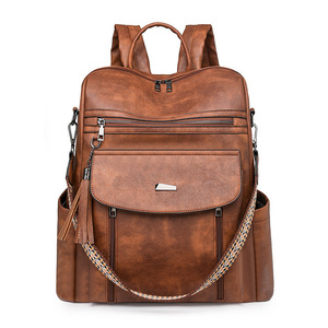 2025春季跨境风潮PU复古女士包袋大容量女士双肩包休闲多功能批发