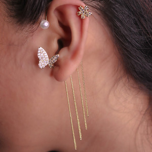 スーパーフラッシュバタフライイヤーフック、ピアスなし、女性用オールインワンイヤリング、気質、個性、ファッショナブルで多用途な新しいイヤリング