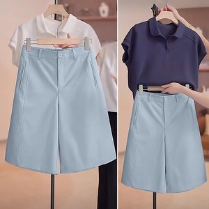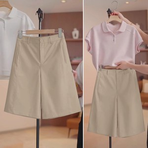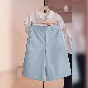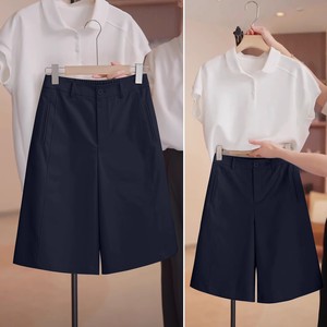 Aラインショートパンツカジュアルルーズ5点パンツ2025新作レディース夏ハイウエストスリムスーツワイドレッグパンツ薄手ミドルパンツ