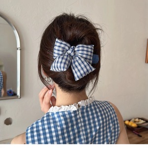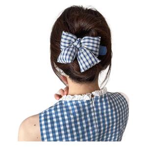 新款发饰小清新蓝格子蝴蝶结发夹后脑勺盘发懒人夹大号鸭嘴夹头饰