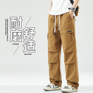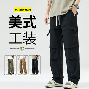 純綿カーゴパンツメンズ 2025 春と秋の新作ルーズストレートアメリカンファッションブランドワイドレッグカジュアルパラシュートパンツ