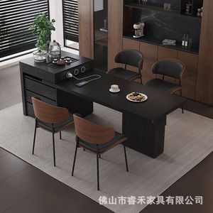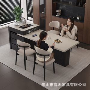 2025新款岩板岛台餐桌一体现代简家用实木可伸缩多功能中岛泡茶桌