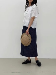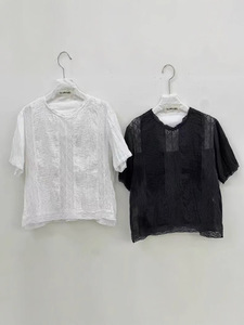 韓国東大門レジャルディネ夏新作25新作ラウンドネック飾り縫い目付きリネンシャツ半袖