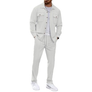 クロスボーダーヨーロッパとアメリカの秋の新作ワッフル長袖ズボンカジュアルツーピースダブルポケットワークシャツメンズスーツ