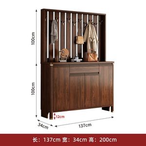 中式鞋柜实木家用门口挂衣架一体玄关柜带鞋凳入户衣帽柜