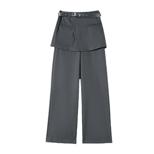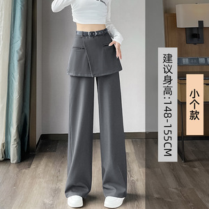 黑色假两件屁帘西装阔腿裙裤女2025春新款高腰垂感直筒拖地长裤潮
