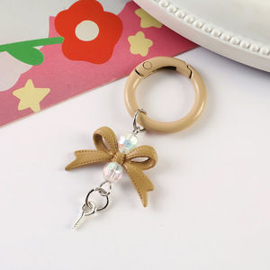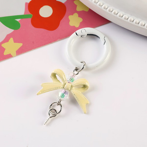 新款创意串珠萌粒DIY合金蝴蝶结带羊角钉盲盒树脂娃娃挂架钥匙扣