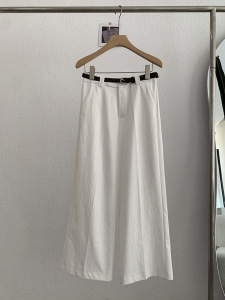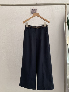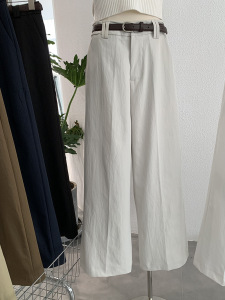 Omalai 無地ハイウエストストレート9点パンツ カジュアルパンツ ベルト付き 秋ファッション 万能 シンプルパンツ 4089