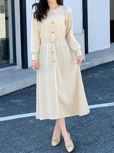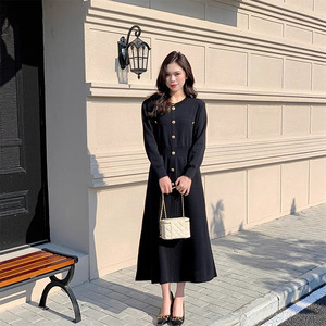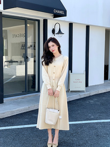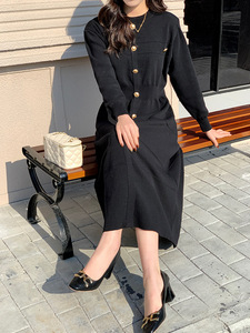 2025 韓国秋服新スタイル少し太った大きいサイズルーズニットロングセータードレスセレブ Xiaoxiangfeng 婦人服
