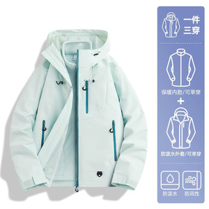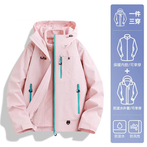 啄木鸟冲锋衣女小个子短款秋新款户外防风防水三合一旅游登山外套