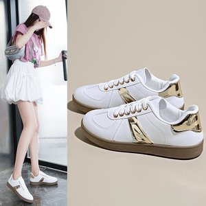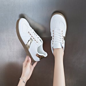 大きいサイズの白い靴の女性の 2025 新作春通気性カラーマッチングファッション白学生スポーツとレジャー平底靴