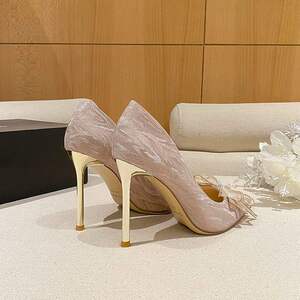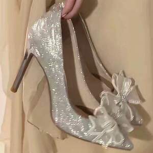 18岁生日礼物女2025春秋新款银色婚鞋水钻蝴蝶结尖头高跟鞋女单鞋
